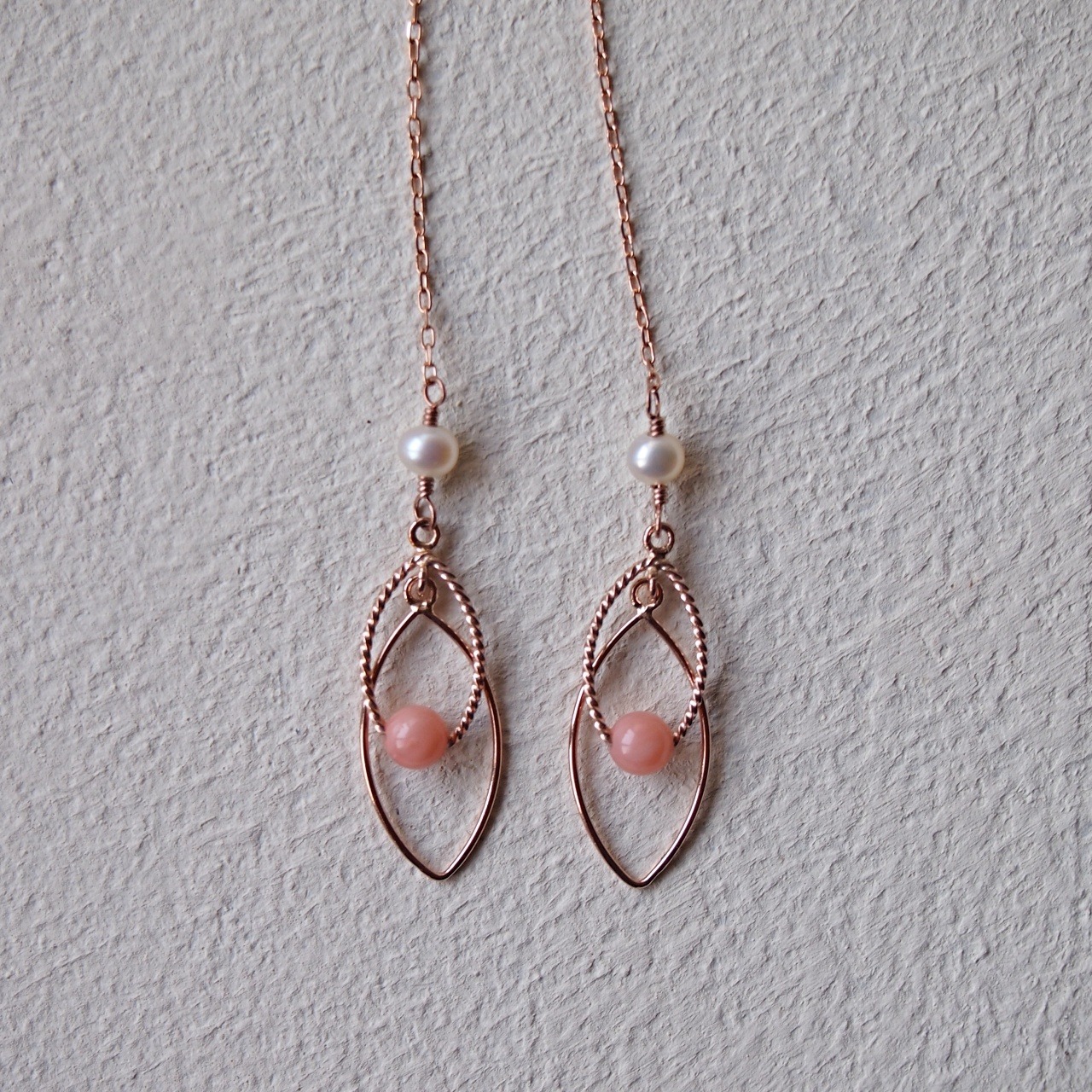 ピンクゴールドの繊細な輝きが耳元で優しくゆれて女性らしさを引き立てます。