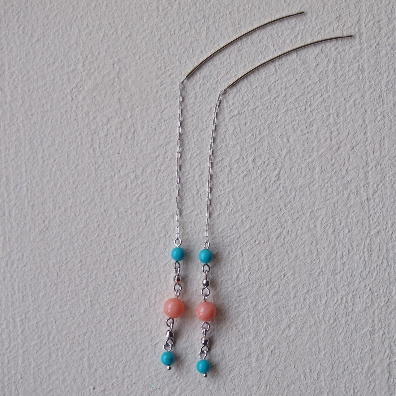 ピンク珊瑚とターコイズのポップな組み合わせが目を惹く個性派ピアス。