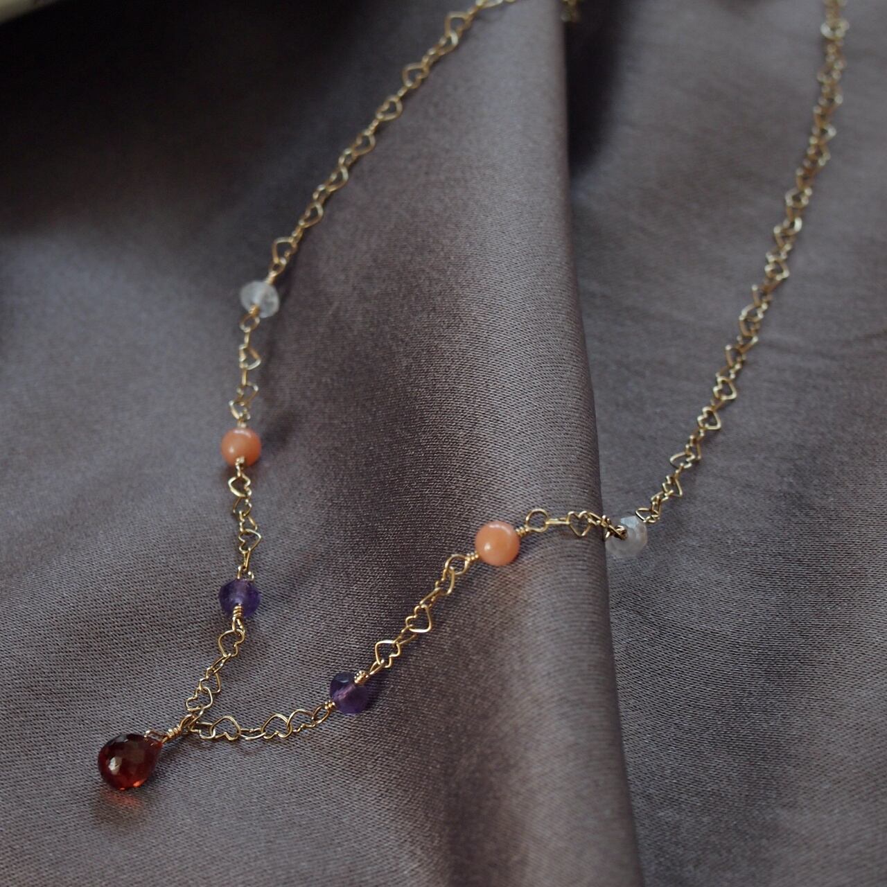 K10ゴールド・ピンク珊瑚・アメシスト・ガーネット・ローズクォーツ