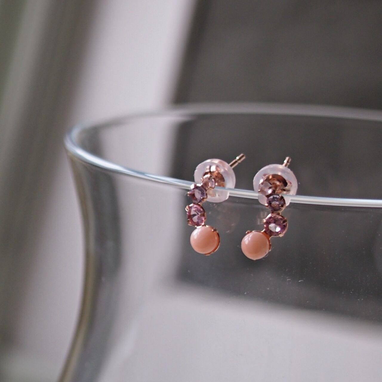とってもcuteなピンク珊瑚の三日月ピアス。