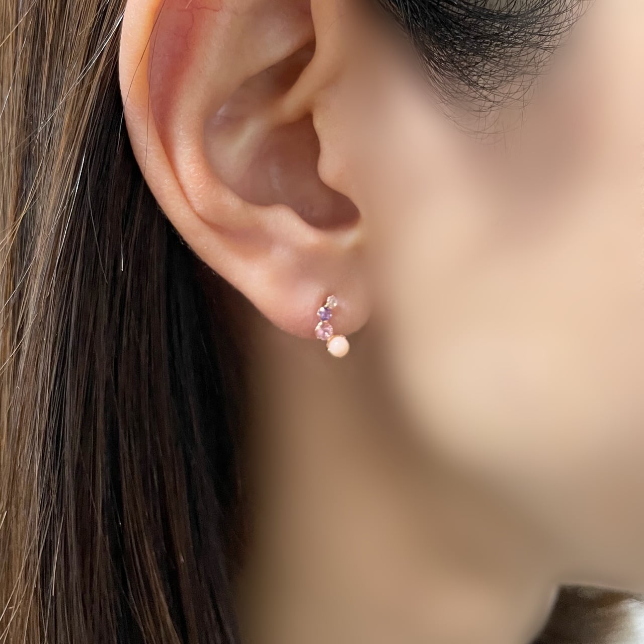 K10ピンクゴールドにピンクづくしの天然石のグラデーションがとてもきれい。