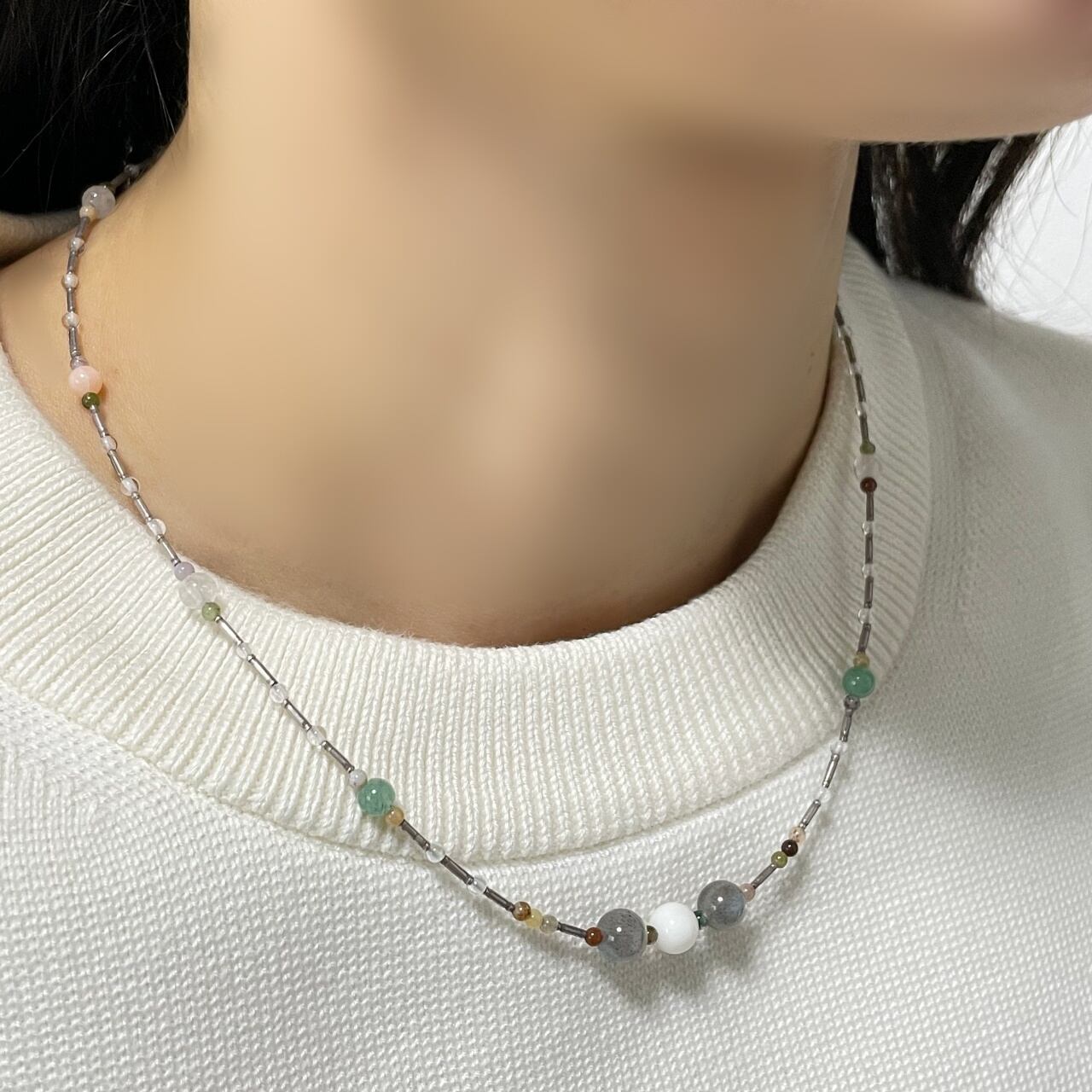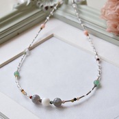 ピンクとグリーンの絶妙な組み合わせが優しい印象のネックレスに仕上がりました♪