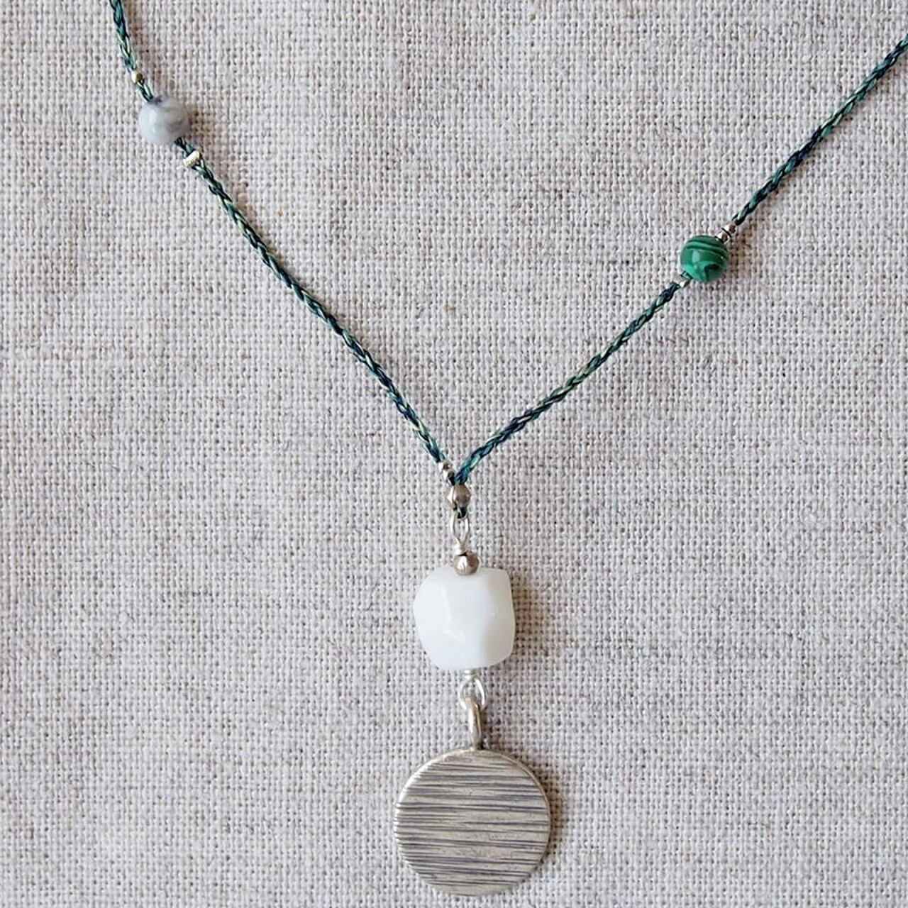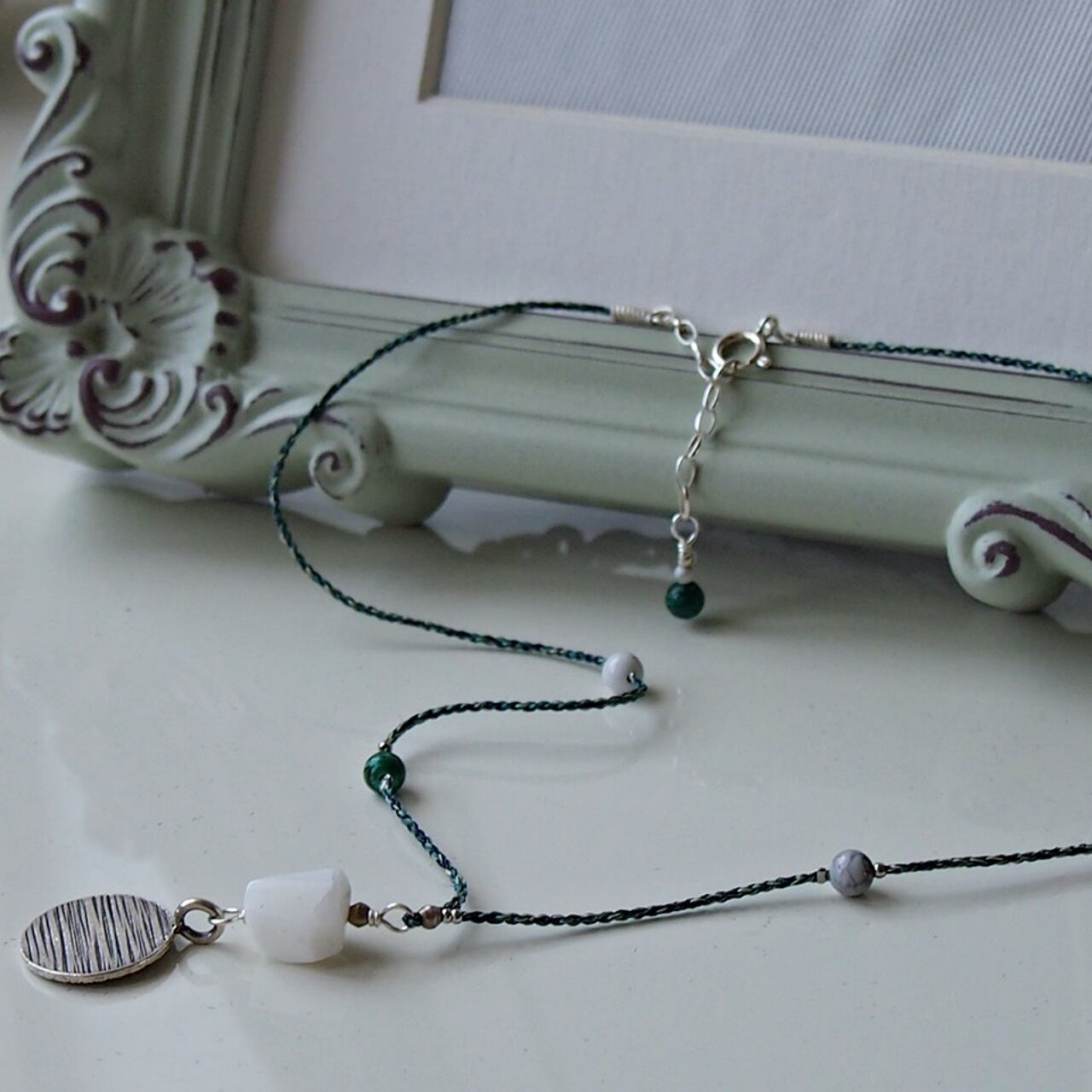 神秘的なグリーンの絹糸に存在感のある白珊瑚とカレンシルバーをトップに♪