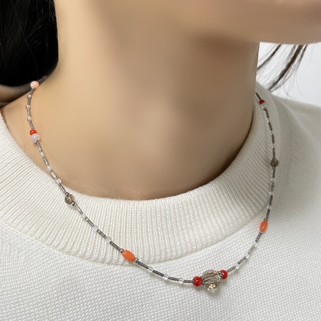 シルバー・地中海珊瑚・ピンク珊瑚・スモーキークォーツ・クォーツ・カレンシルバー(パーツ)