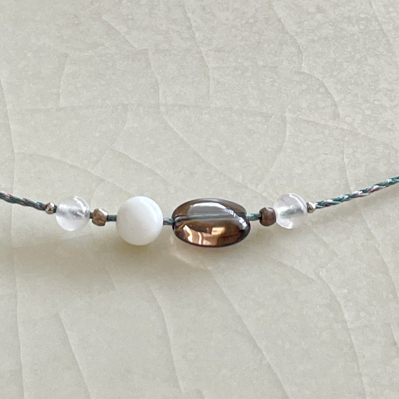 シルバー・白珊瑚・スモーキークォーツ・ローズクォーツ・絹糸(国産/草木染め)・カレンシルバー(パーツ)