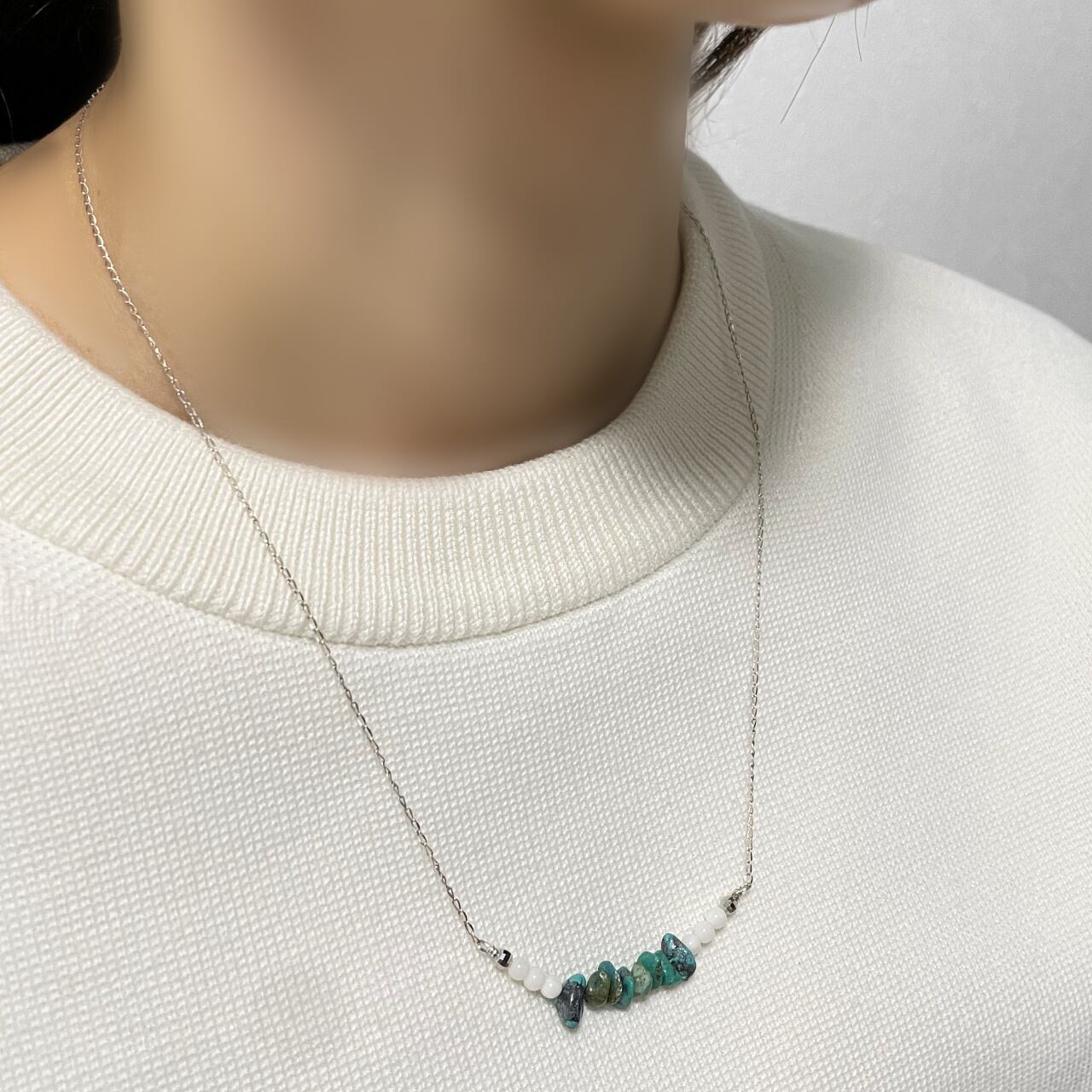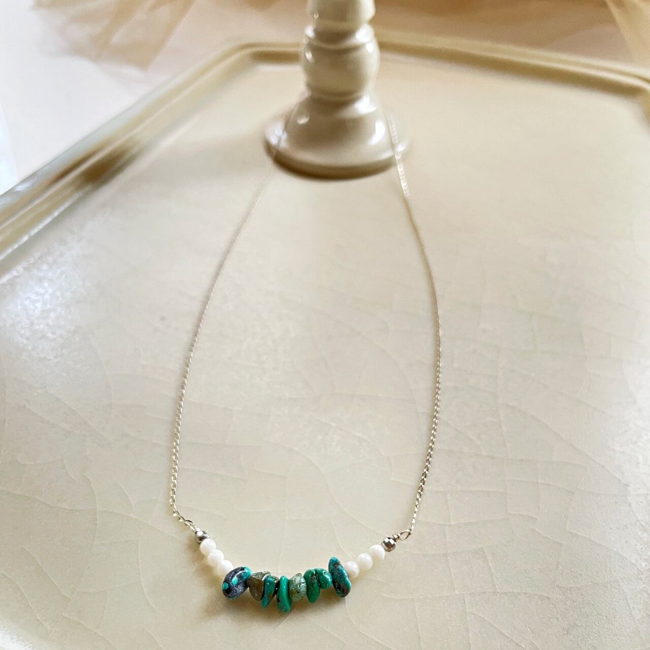 白珊瑚とターコイズが主役のネックレスはどんなスタイルにもマッチします。